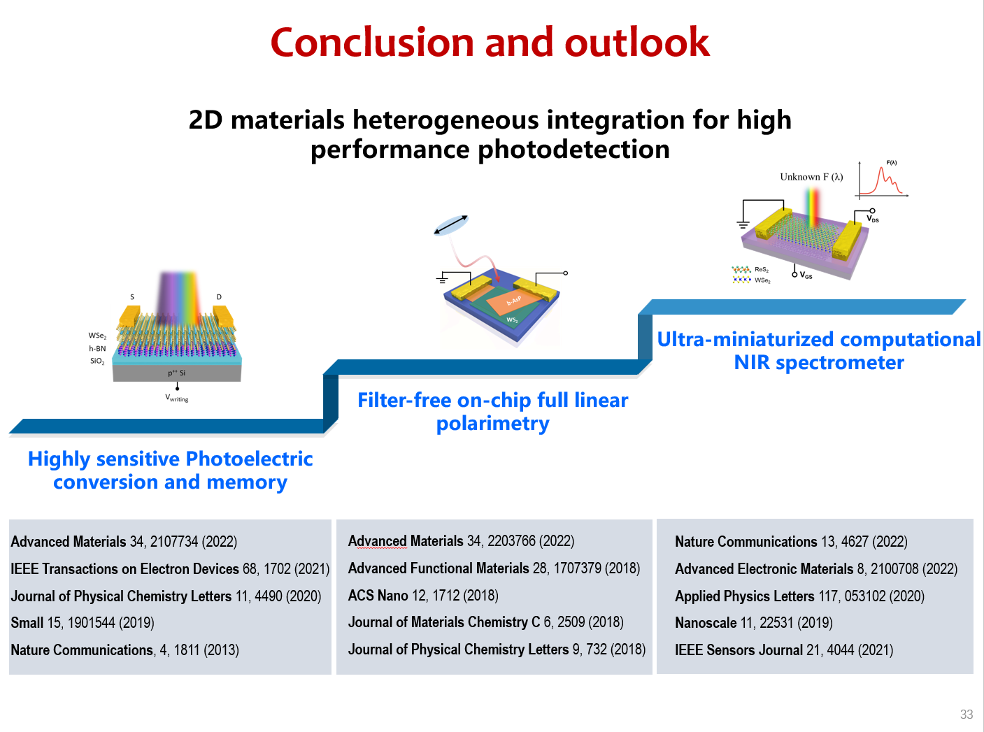 最后,张教授再次强调了二维材料巨大优势以及利用二维材料构造探测器的必要性,并进行了总结与展望。