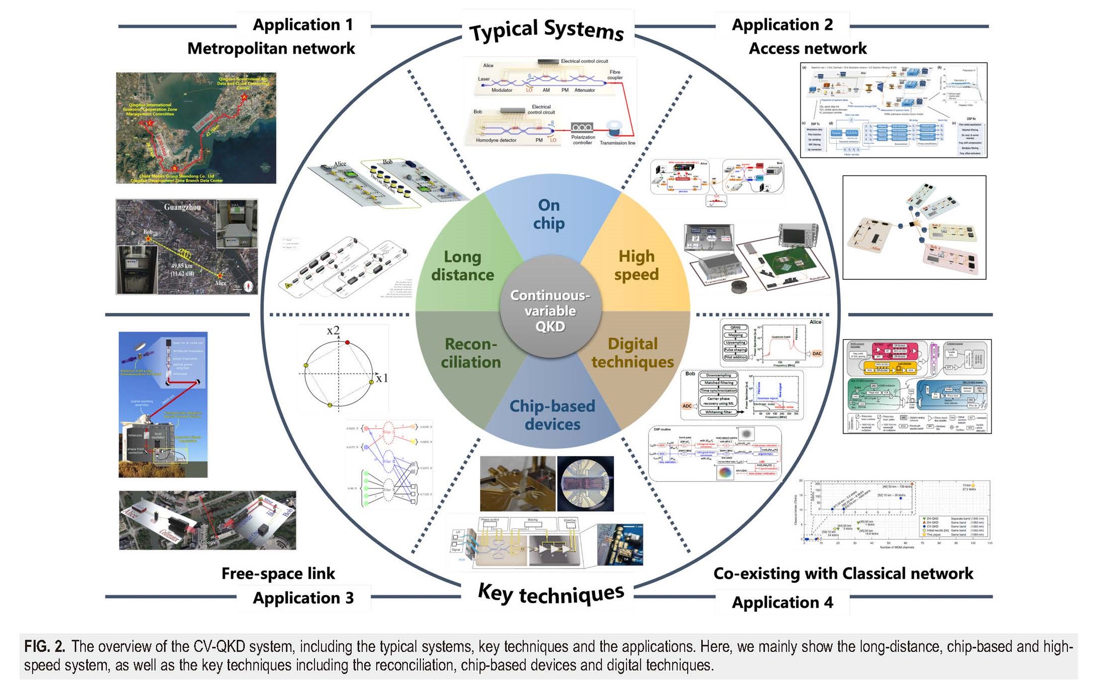 —北京邮电大学联合研究团队应邀在囯际物理学综述期刊、美国物理联合会(American Institute of Physics, AIP)旗下的《应用物理评论》(Applied Physics Reviews)杂志发表题为《连续变量量子密钥分发系统:过去、现在和未来》(Continuous-variable quantum key distribution system: past, present, and future)的长篇综述论文。该论文总结了连续变量量子密钥分发系统的发展历程,介绍了当前最先进的系统化技术并对未来该领域的发展趋势进行了展望。论文指出,当前连续变量量子密钥分发系统在城域和接入距离内的高性能、高兼容性优点已经得到了验证,未来将会进一步向高集成度、高速率和远距离方向发展,赋能大规模量子密钥分发网络。