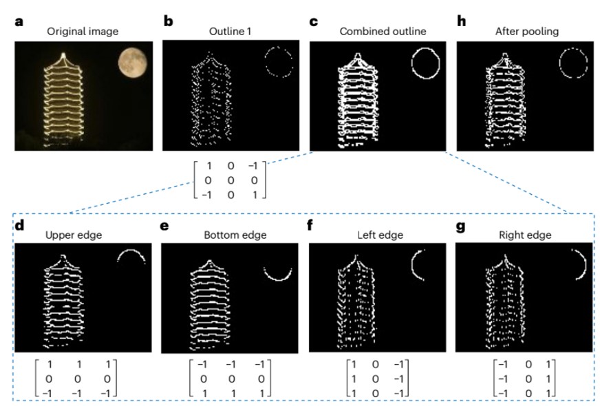 该芯片采用2bit MAC(乘累加单元),3微米工艺技术节点,共集成了3000个碳基晶体管,可实现图像轮廓识别、提取等功能,图像轮廓提取正确率高达100 %(如图2)。