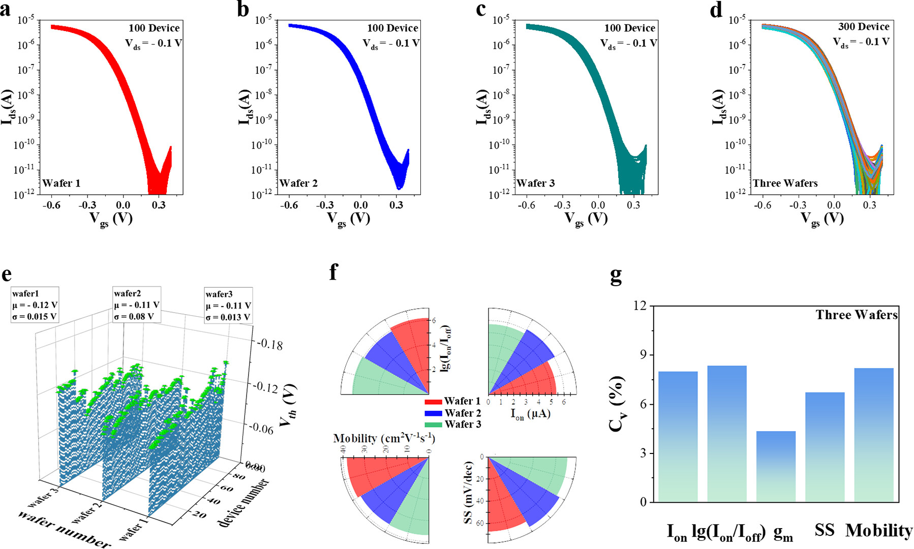 图3:晶圆与晶圆之间CNT FET的均匀性