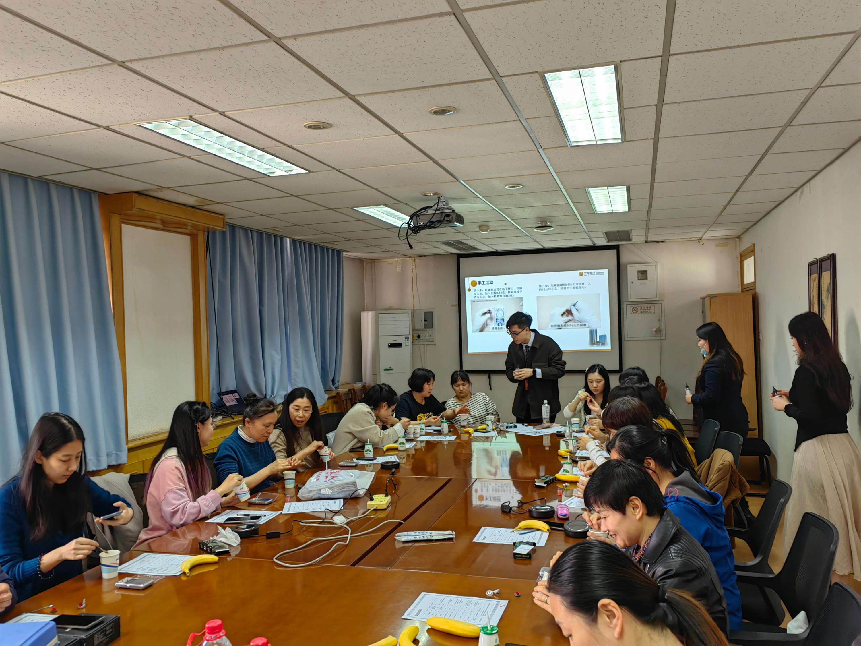 的二十多位女教师们参加了学院工会和宁波银行共同主办的三八节口红DIY活动。