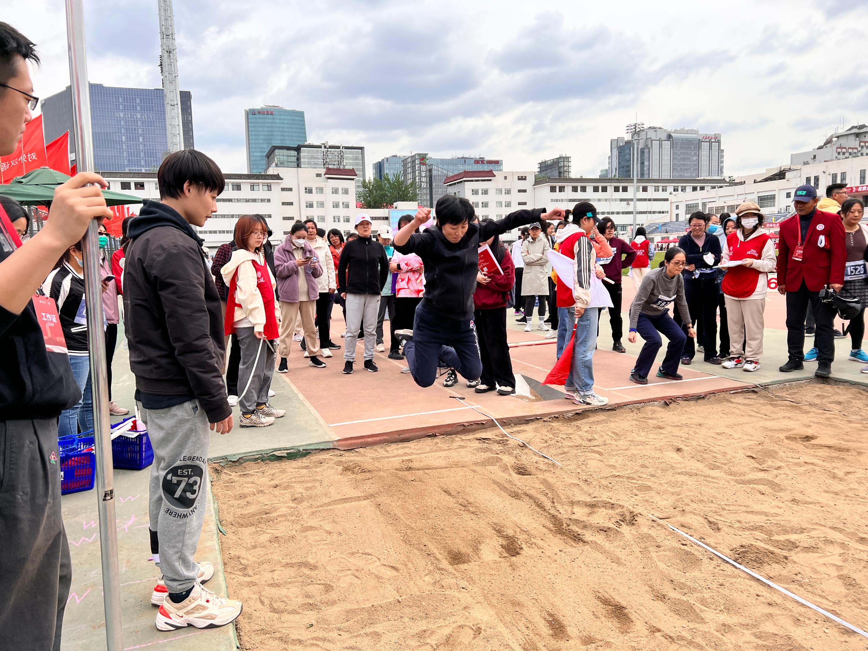 丁雪芹老师在跳远比赛中