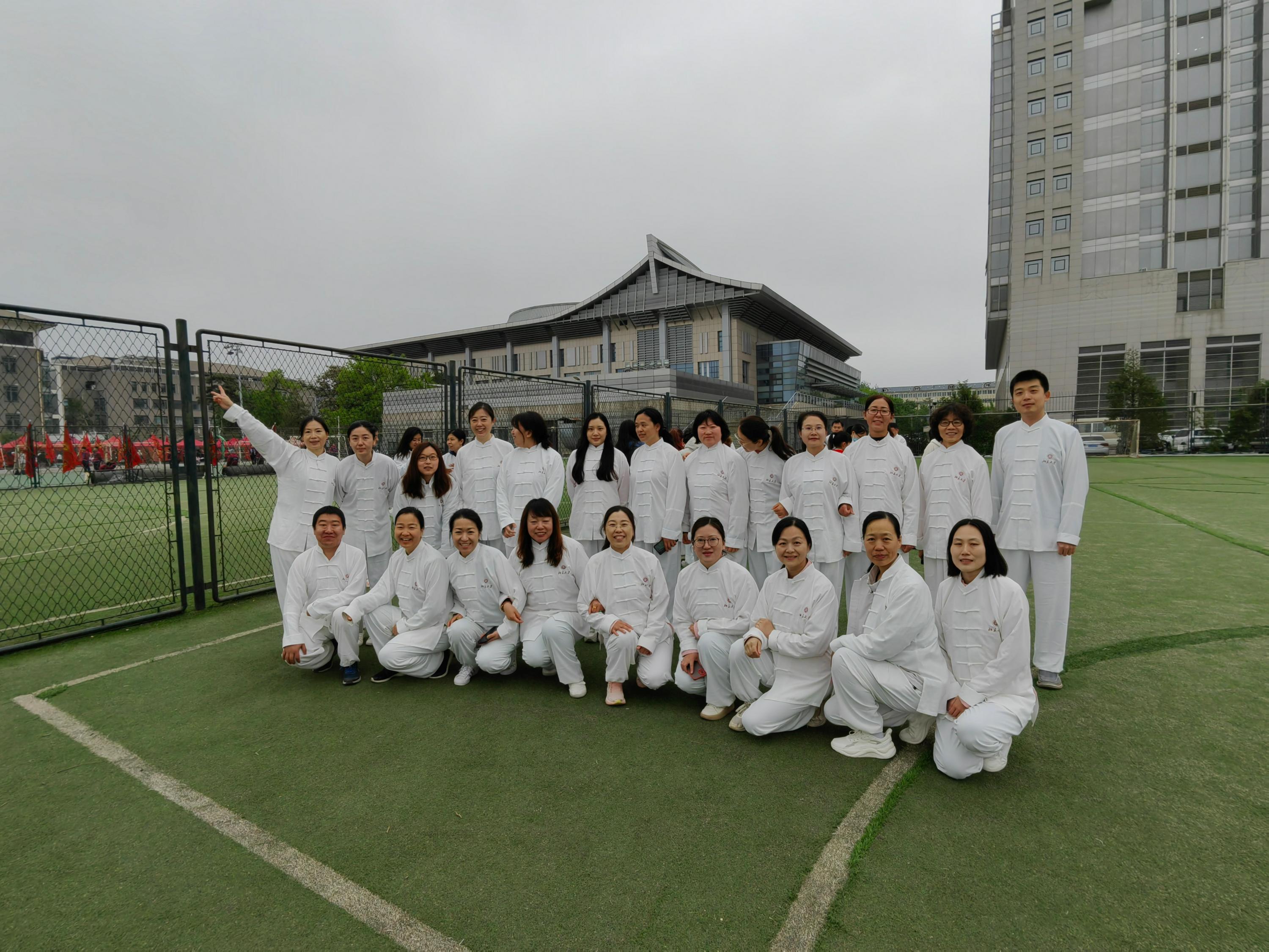 25位教师参与了开幕式大型团体操太极拳表演,最后与北大师生一起,在绿色的运动场上组成1898-2023,喊出“团结起来振兴中华”的口号。