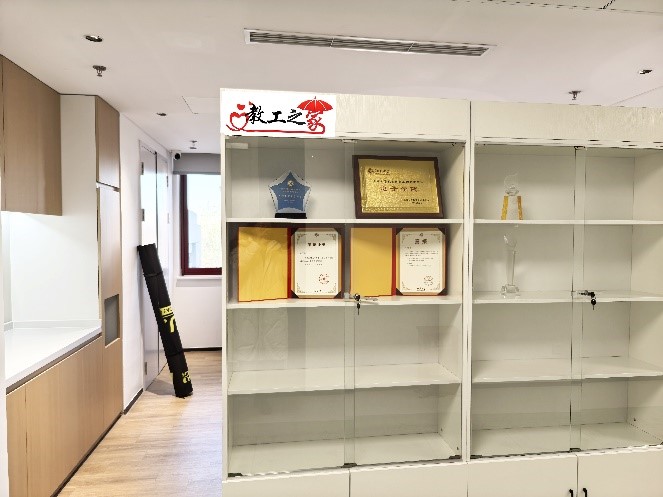 工会各社团的奖杯等展示出来,并且将该空间隔离出私密性。