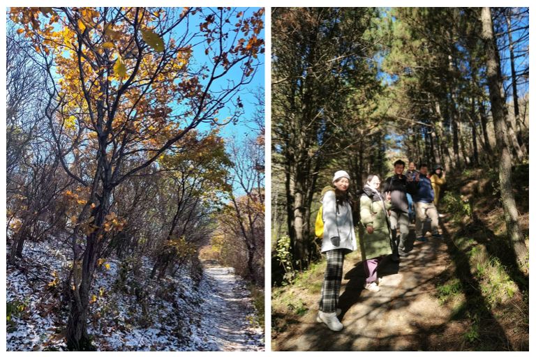 下午15时,队伍开始有序下山。尽管山间气温较低,但大家身着防风衣物,步履轻快,热情不减,笑语不断,一路交流着徒步的感受。16时,队伍乘车返回学校,圆满结束了这次融合自然观赏与人文追忆的秋日之旅。