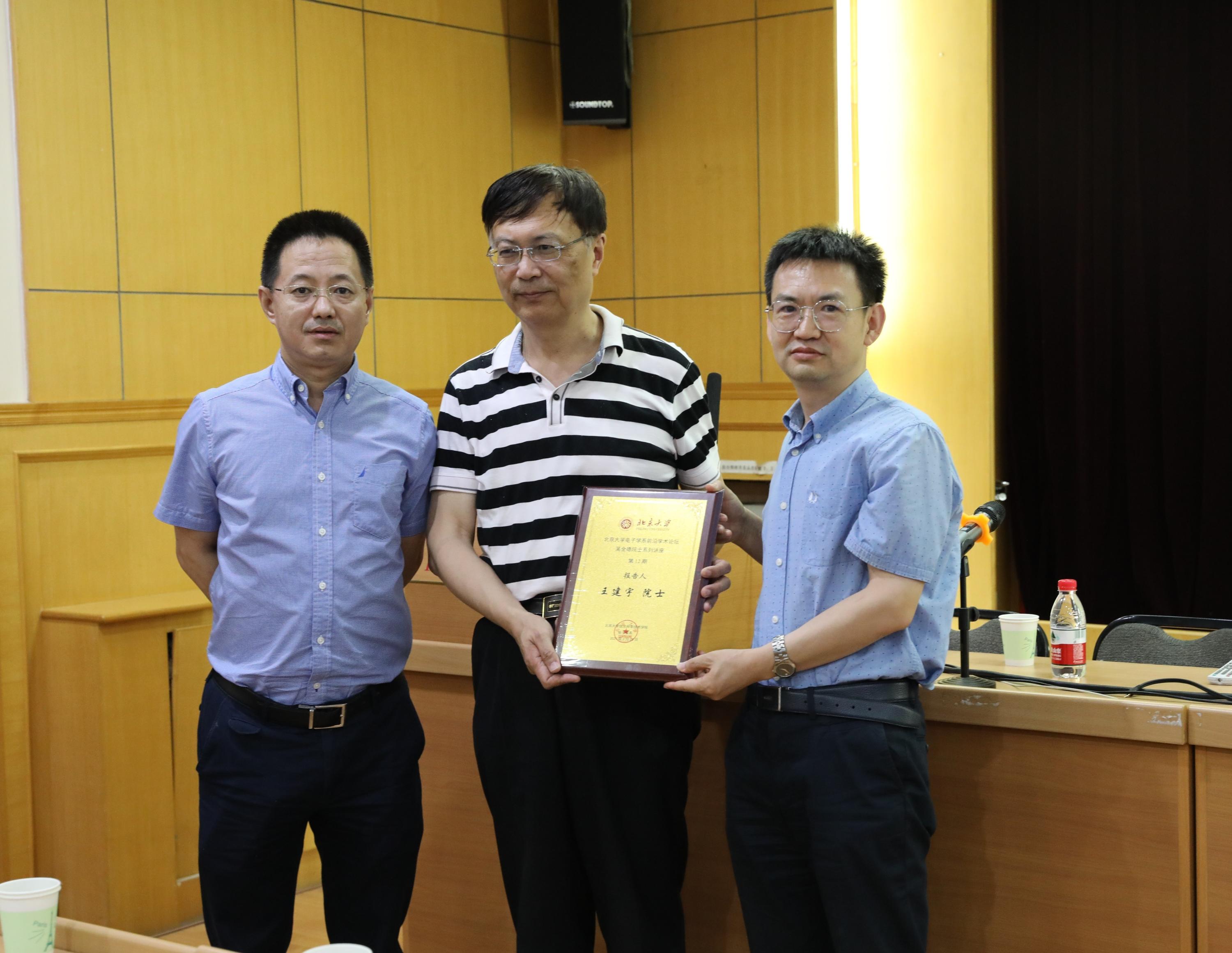 活动最后,信息科学技术学院副院长、电子学系党总支书记侯士敏教授为王建宇院士颁发本次活动的纪念证书并合影留念。本期讲座在热烈的掌声中圆满结束!