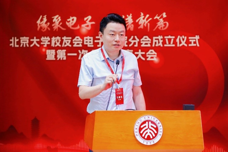 李文胜副会长在致辞中高度评价了北大电子学科深厚的底蕴和校友们为国家科技进步、经济社会发展作出的卓越贡献,他以价值守护、精准服务、加速协同三个关键词勾勒了分会未来蓝图:筑牢根基,做价值守护者,坚守北大精神血脉和电子人求真务实的学科特质;精准对接,做校友连心桥,深入了解校友需求,创新服务机制;协同共创,做发展加速器,充分激活学科禀赋与校友智慧,构建校友与学院在人才培养、科研攻坚、成果转化、社会服务等维度深度协同的枢纽。他期待分会不负众望,为“双一流”建设和校友事业发展搭广阔舞台,书写北大电子服务国家科技自立自强的新篇章。