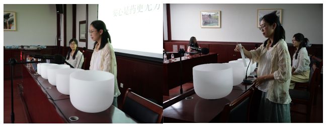 籍老师用水晶钵和吟唱带领大家体验音乐疗愈