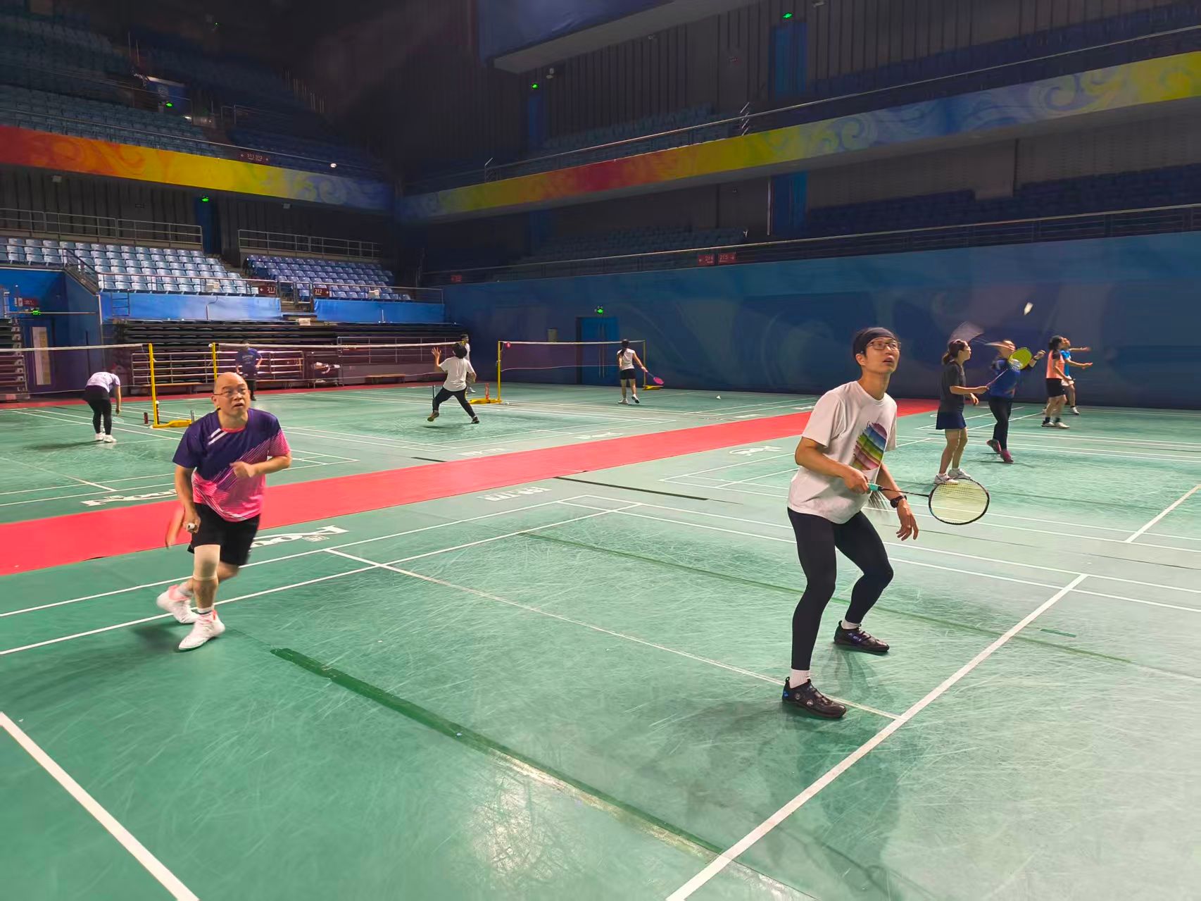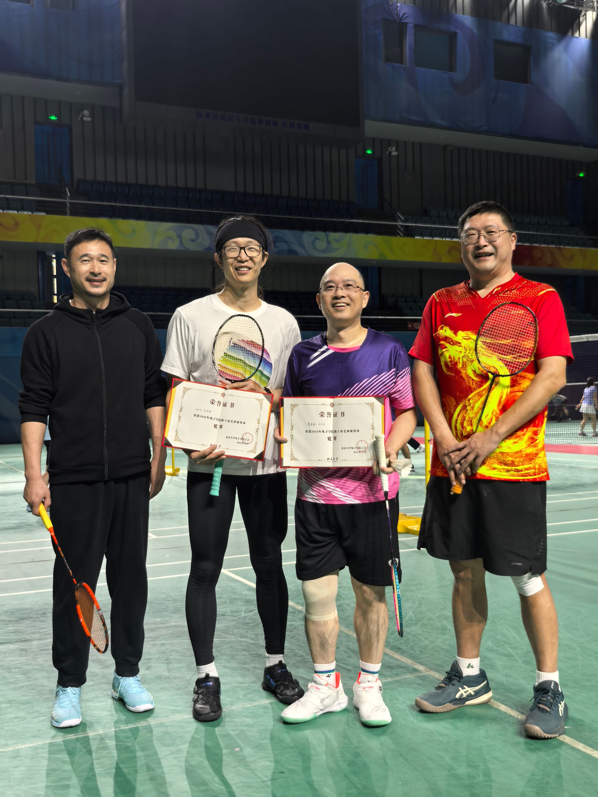 工会在邱德拔体育馆成功举办了首届教职工羽毛球双打比赛。比赛设男双、混双和女双三个项目,吸引了学院众多教职工踊跃参与,现场气氛热烈、精彩不断。