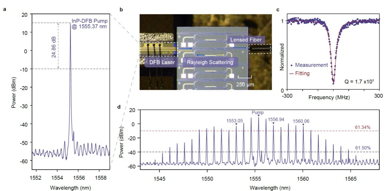 研究团队在芯片尺度上证明了光载噪比(OCNR)、线宽与传输速率之间的制约关系,并实现了单波长1 Tbps的传输能力。该工作进一步通过片上波形整形与半导体光放大器的协同集成,构建了“芯片级并行载波发生器”,在将系统体积缩小百倍的同时,实现了5 Tbps的聚合传输容量,为“高容量、低功耗、微型化”的下一代边缘计算光互连提供了全新的技术路径。