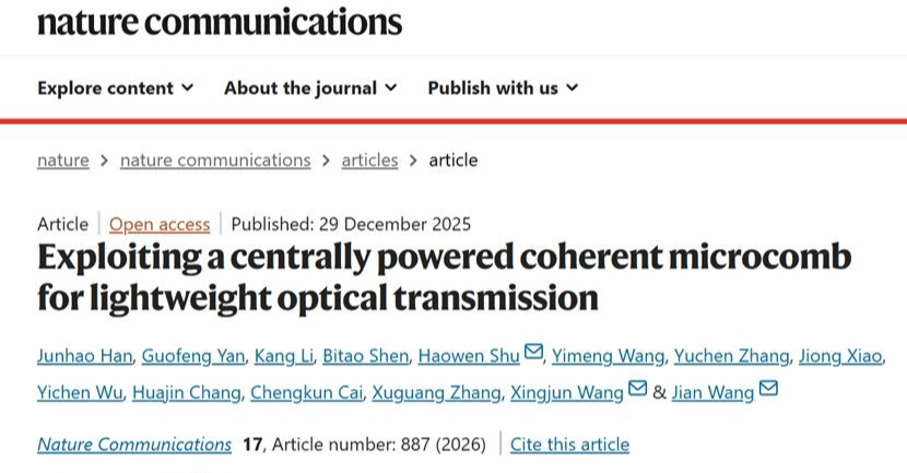 近日,北京大学电子学院王兴军教授-舒浩文研究员团队与华中科技大学武汉光电国家研究中心王健教授团队合作,在国际学术期刊Nature Communications在线发表了题为 "Exploiting a centrally powered coherent microcomb for lightweight optical transmission"的研究论文。在人工智能(AI)、物联网(IoT)与低空智能系统等新兴场景中,数据流量呈指数级爆发,计算范式正从“中心化云端”向“分布式边缘”深刻演变。一方面,复杂的动态环境要求边缘节点(如基站、自动驾驶车辆、工业网关)具备处理海量实时数据的能力;另一方面,边缘设施的物理空间极度受限,对光传输系统的体积、功耗和集成度提出了严苛要求。