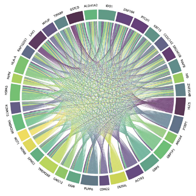 由卵巢癌化疗耐药性个体特征基因组成的基因互作网络图