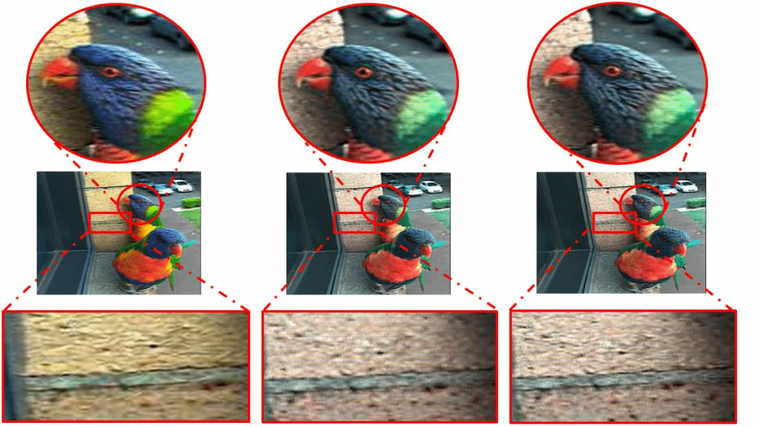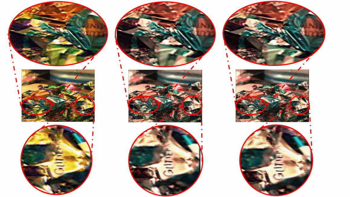 近日,A片 杨光临副教授课题组在相关研究中取得重要进展。他们针对目前已有的柱状光栅的视点排布计算原理,在制作立体合成图的过程中提出了一种基于超分辨抗混叠的多视点裸眼三维图像合成方法,可以提升立体合成图的信噪比,有效地改善立体合成图的显示质量。首先,使用WDSR(宽激活深度残差网络超分辨)算法部分取代传统插值算法,将原视点图放缩到目标合成图的分辨率大小。由于WDSR算法只能将图像整数倍放大,所以在放缩图像中将结合使用传统插值算法,将原图放缩到目标合成图大小。然后根据柱状光栅的多视点子像素映射关系,计算得到多视点子像素映射表。再根据子像素映射表制作各视点蒙板,利用蒙板加速立体图的合成速度,把放缩后的各视点视图的一部分重新排列组合,最后可以得到比使用传统插值算法效果更好的立体合成图,降低了立体合成图的性噪比,改善了立体合成图的显示质量,尤其是对图像细节有很高的保真度。实验效果如下所示: