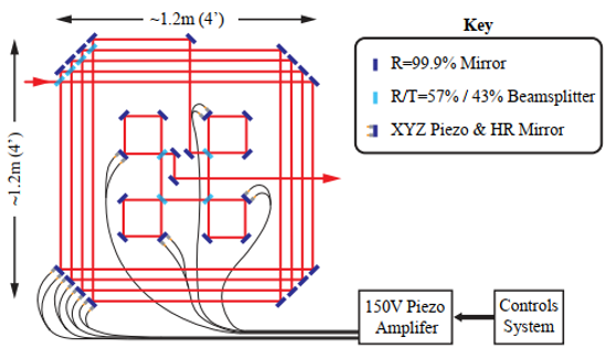 (入射的81个激光脉冲先在四个大环路腔中相干叠加,成为9个脉冲;然后再在四个小腔中相干叠加为一个脉冲)