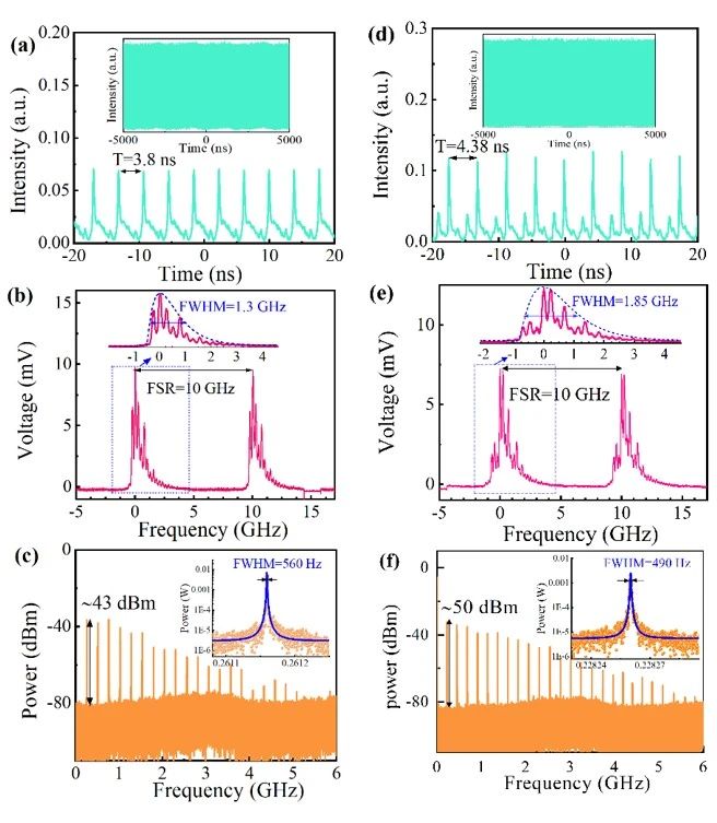 图3 法拉第激光在气室温度为97°C(左栏)和101°C(右栏)时的锁模输出特性