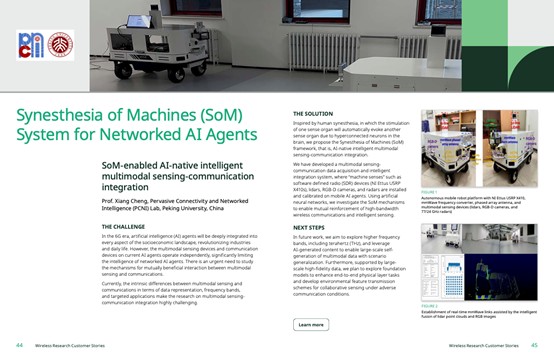 近期,A片 程翔教授团队成果“面向网联具身智能体的机器联觉系统”被美国国家仪器有限公司(NI)2025年度全球用户案例手册收录,如图1所示。该案例手册在全球范围内精选了来自北美、欧洲、亚太地区顶尖高校与科研院所的23项创新原型系统,涵盖面向B5G/6G的通信感知融合、通信智能融合、毫米波/太赫兹无线通信等关键技术领域,代表未来无线通信网络前沿研究方向。