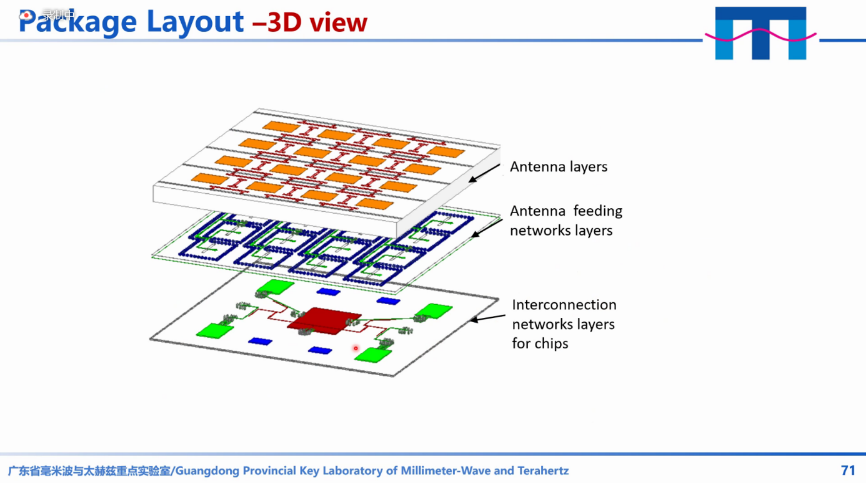 针对毫米波的GaN集成电路,薛教授介绍了功率放大器、低噪声放大器和单刀双掷开关电路的设计方法,并将三个元部件集成为一个前端系统,该系统可以满足5G毫米波的需求。针对毫米波天线的设计方法,介绍了一种去耦合的方法,通过使用π型网络构造去耦合的路径,提高了天线的隔离度。针对系统集成,介绍了一个收发芯片的设计。