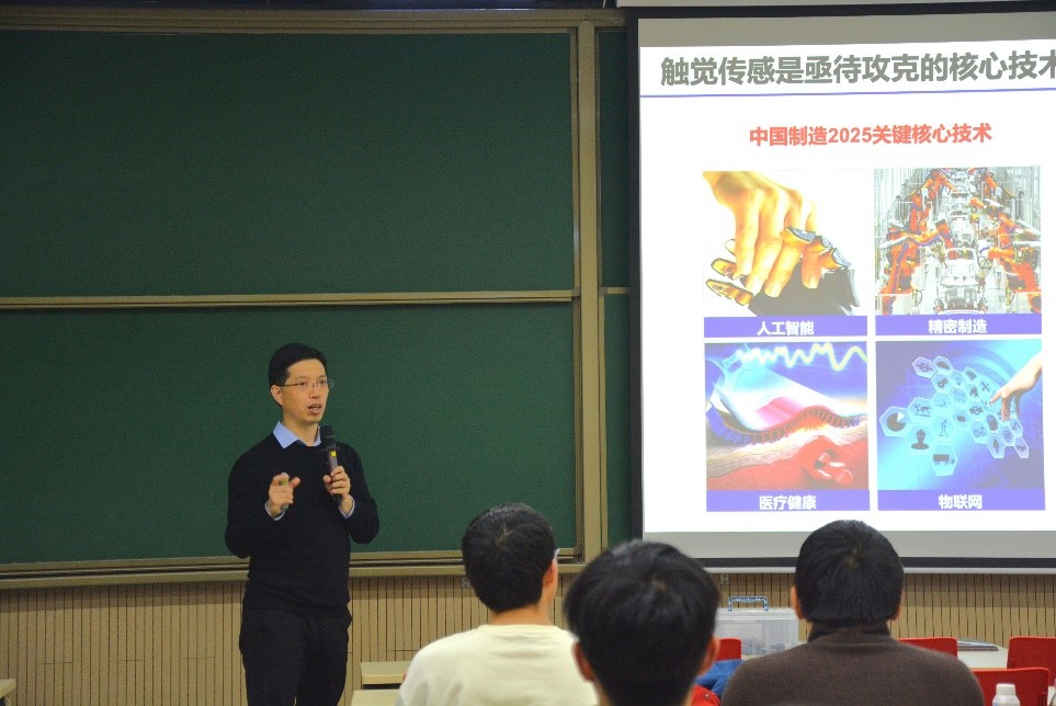 首先,潘曹峰教授介绍了触觉传感的概念及其重要性,日常生活离不开传感,而触觉传感是传感器中的关键技术,是机器人获得触感的方式。触觉传感可以用于人工智能、精密制造、医疗健康、物联网等,是亟待攻克的核心技术。触觉传感器的缺失会导致机器人反应不灵敏、动作不精准。