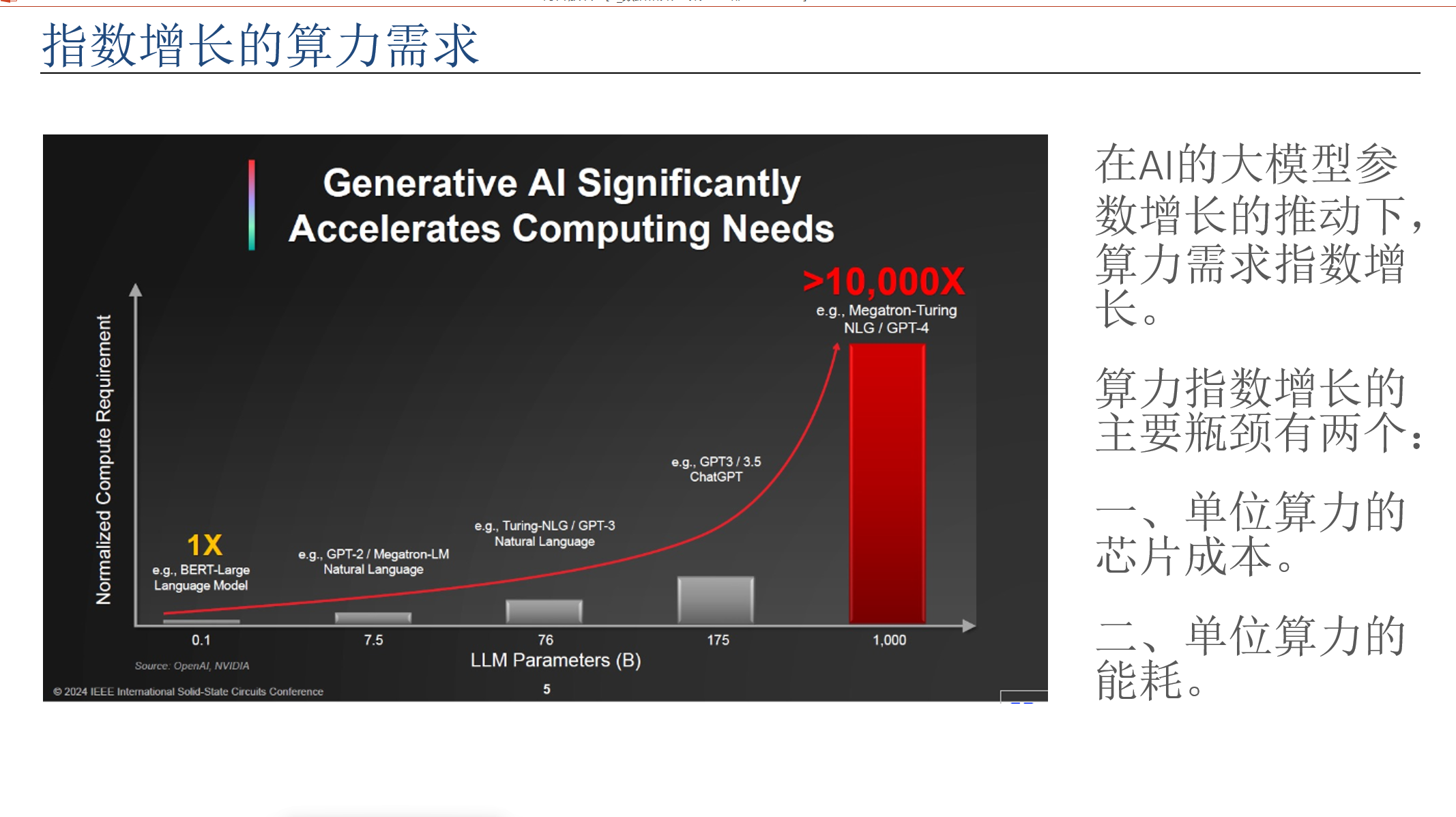 然后,罗彤副总从经济学的供应和需求的角度为大家梳理了集成电路产业数十年来的发展路径。罗彤副总指出,需求并非来源于社会中的个体,而是来源于“计算”、“传输”、“存储”等数据需求。在集成电路产业发展初期,伴随着计算机科学的缓慢发展速度,上述数据需求能够很好地被芯片的微缩(Scaling down)所满足,即微缩和生产的工艺技术及电路结构等优化能够“供应”数据的需求。然而,随着计算机科学等学科的发展,尤其是近年来基于大语言模型的AI发展,数据量不断上升且计算速度要求不断提高,芯片的微缩不能够完全“供应”这些需求,导致集成电路产业遇到了“边界”。存储产品和数据需求之间供不应求的关系是未来电子领域的一大瓶颈。