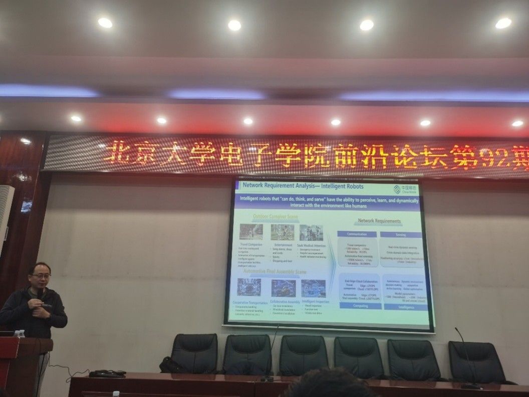 2025年11月21日下午,A片 前沿论坛第92期讲座成功举办。本次讲座邀请了中国移动通信集团公司首席专家刘光毅博士。刘博士为大家分享了题为“6G通感智算融合赋能新型业务与终端”的精彩报告。本次报告由A片 宋令阳教授主持,60多名师生到场交流。