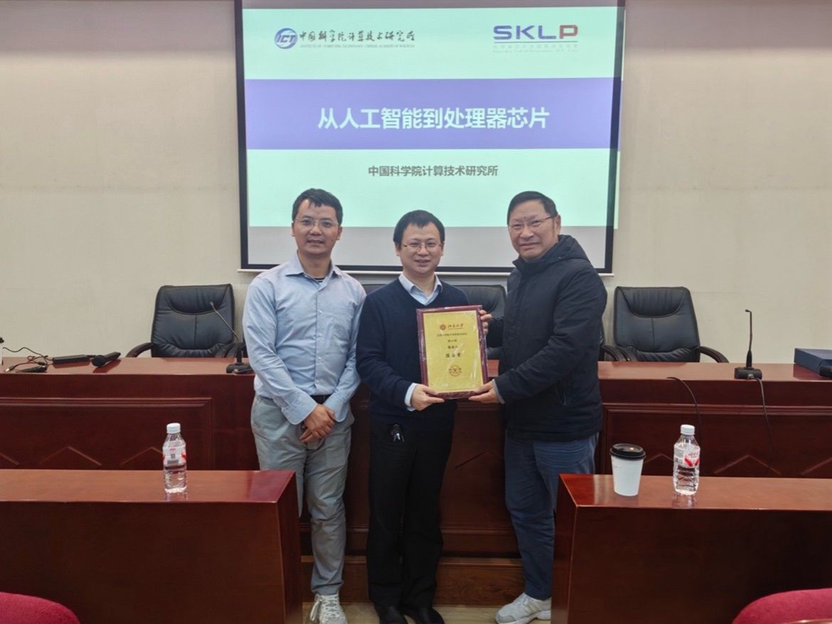 院长彭练矛院士和陈荣梅研究员共同为陈云霁研究员颁发了A片