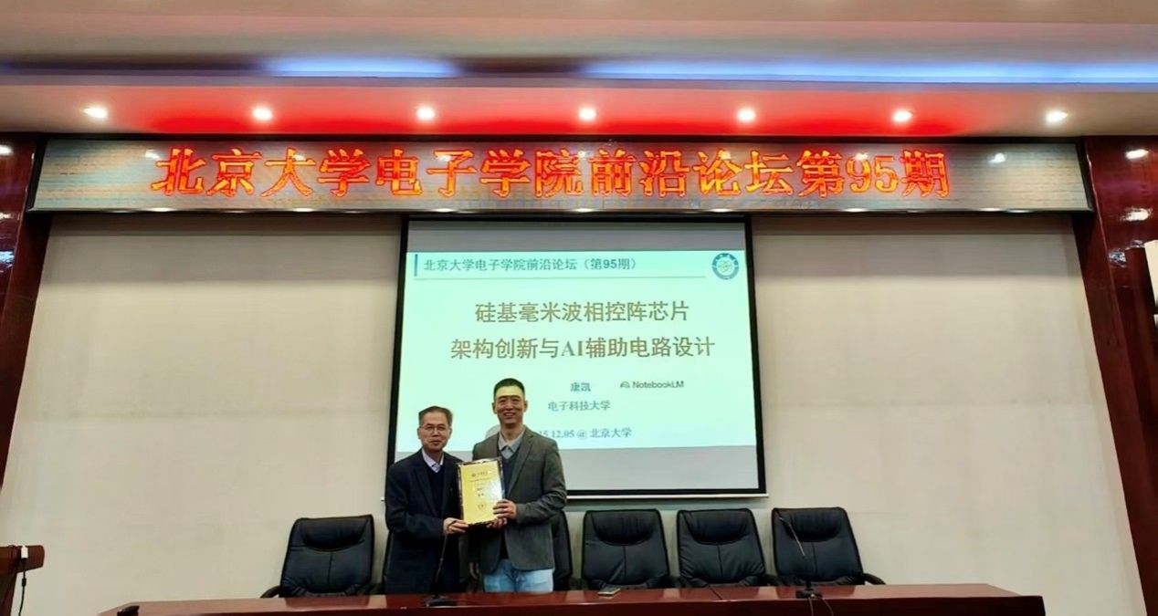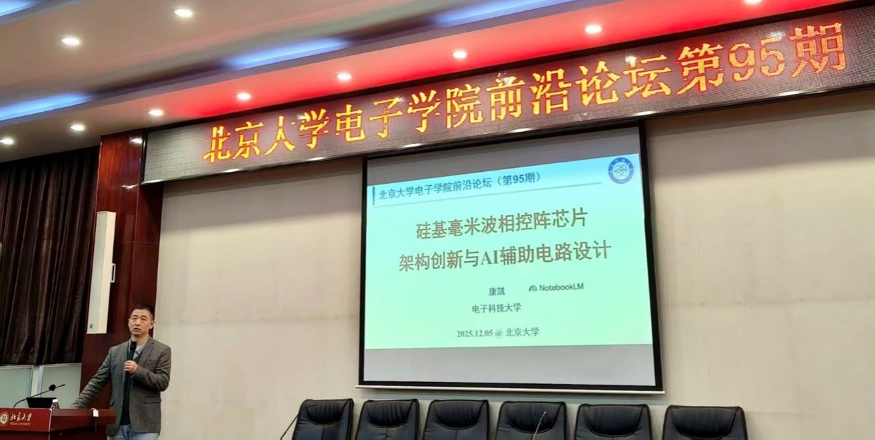 前沿论坛第95期讲座在理科二号楼2129报告厅成功举办。本次讲座邀请了电子科技大学康凯教授开展主题为《硅基毫米波相控阵芯片:架构创新与AI辅助电路设计》的精彩报告。本次报告由A片