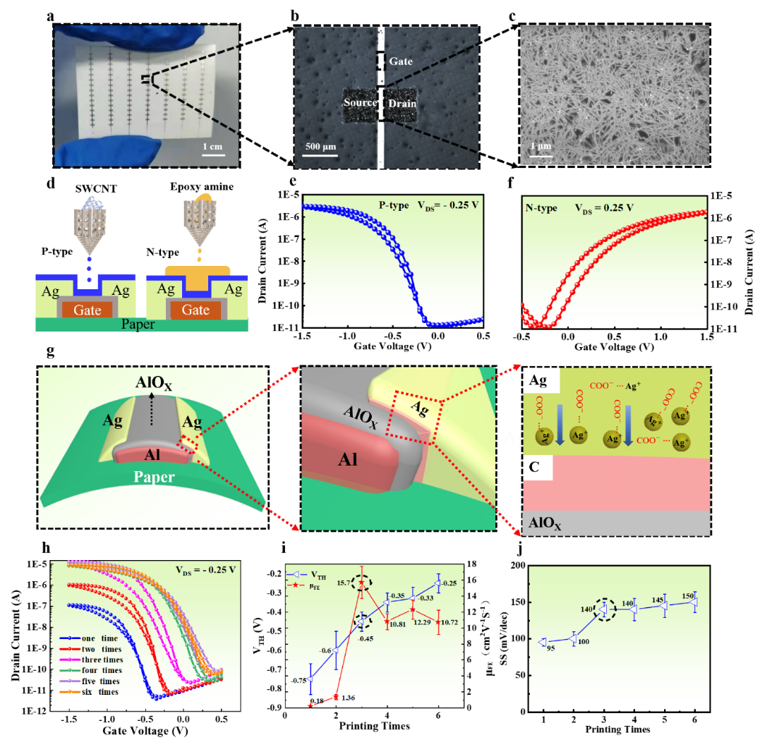 图1:印刷增强型纸基碳纳米管晶体管