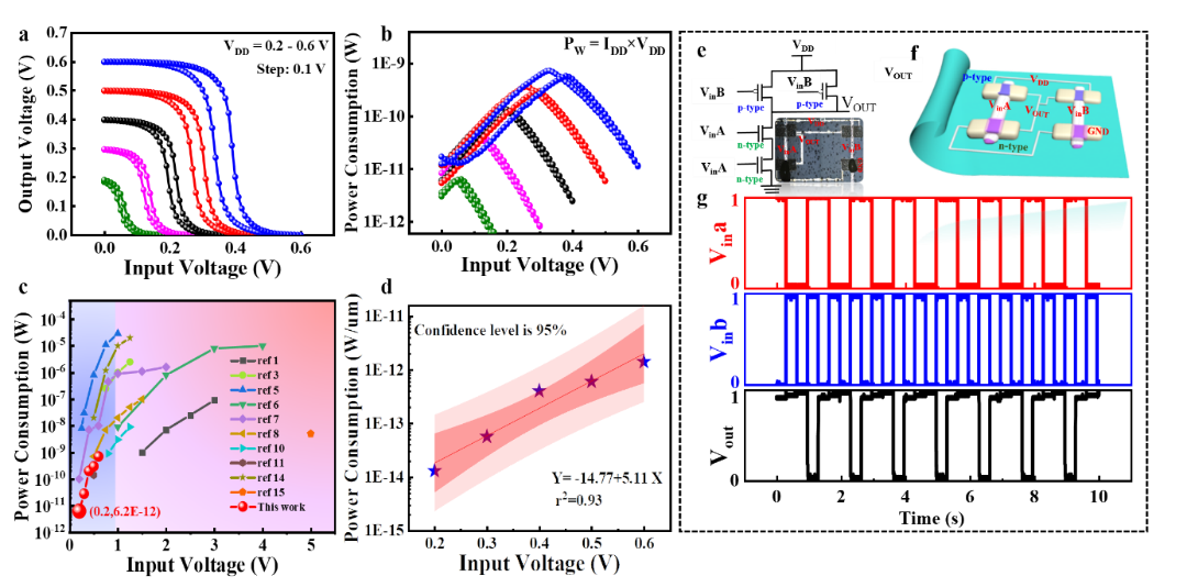 图2:超低功耗纸基CMOS反相器和NAND电路