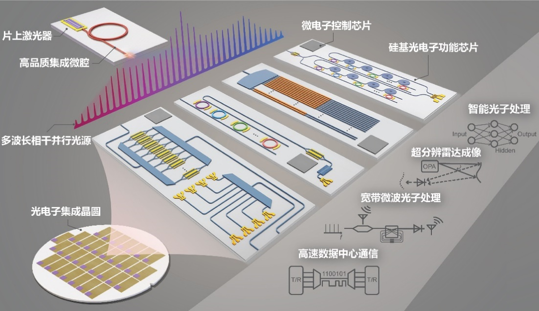 王兴军教授团队和美国加州大学圣芭芭拉分校教授John E. Bowers团队在世界上首次报道了由集成微腔光梳驱动的新型硅基光电子片上集成系统,研究团队历时3年协同攻关,终于攻克了这一世界性难题。这个工作是集成光梳和硅光的完美结合,是世界学术界和产业界关注的焦点,它打通了光频梳从实验室走向产业化的最后一公里,从而可以真正让这项技术走向大规模应用。同时,它也解决了硅光多路并行光源的世界性难题,使硅光有了自己大脑。相关成果发表于Nature。