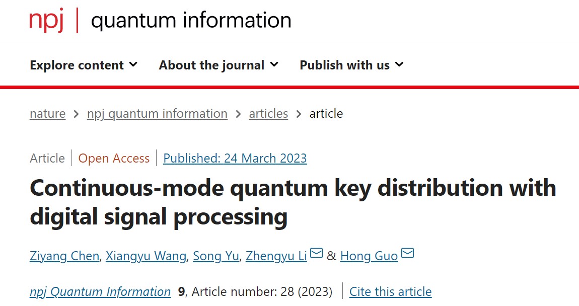 -北京邮电大学联合研究团队在连续变量量子密钥分发研究方面取得突破性进展,完成了数字信号处理技术应用于连续变量量子密钥分发的安全性证明,该结果为构建兼容经典相干光通信信号处理算法的数字化量子密钥分发提供了有力的支撑。相关成果在线发表于自然出版社旗下的国际学术期刊《npj quantum information》[1]。